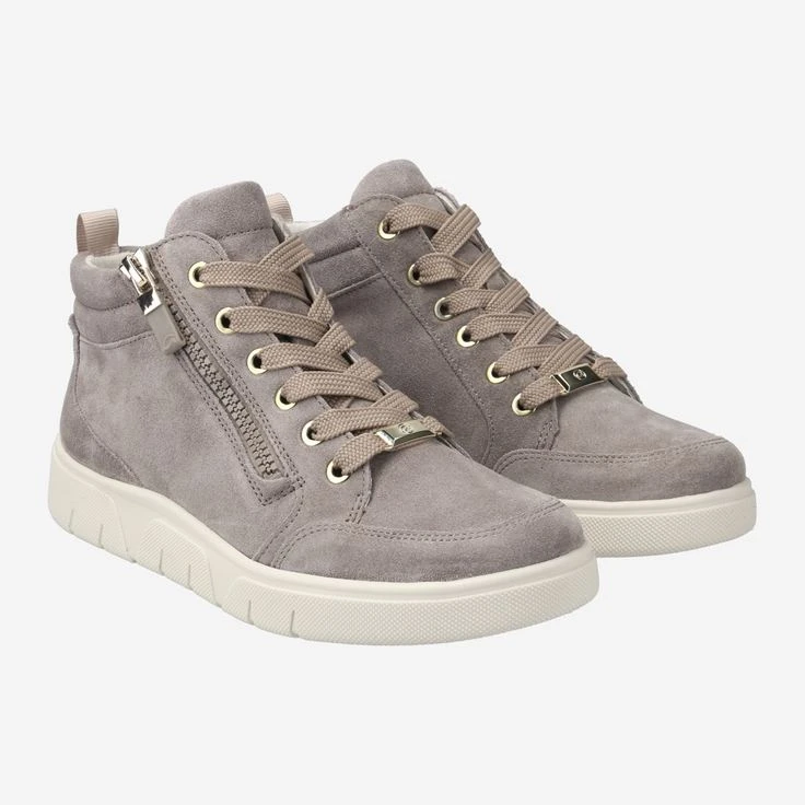 Der Hightop Sneaker ROM von ara ist ein wahrer KULT! Er hat eine lange Historie in der Streetwear-Kultur und verkörpert seit Jahrzehnten Freiheit und Individualität. Mit seinem hohen Schaft, der im Vergleich zu herkömmlichen Sneaker den Knöchel bedeckt, strahlt er eine perfekte Mischung aus Lässigkeit und sportlicher Eleganz aus. Dieses Modell ist aus beigem Veloursleder gefertigt, wodurch er hervorragend zu monochrome Styles und dem beliebten Athleisure-Look passt!