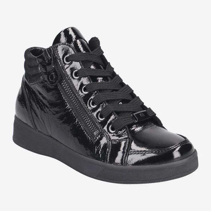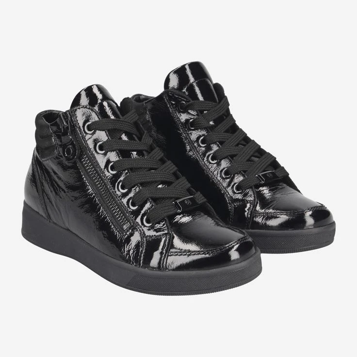Dieser Hightop Sneaker ROM von ara ist KULT! Er besitzt eine lange Historie in der Streetwear-Szene und verkörpert seit Jahrzehnten Freiheit und Individualität. Mit seinem hohen Schaft, der im Gegensatz zu herkömmlichen Sneakern den Knöchel bedeckt, strahlt er eine perfekte Mischung aus Lässigkeit und sportlicher Eleganz aus. Das flexible Lackleder bringt zudem einen Hauch Noblesse mit!