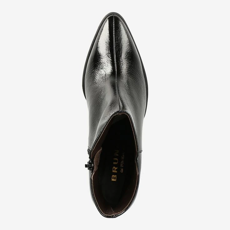 Sie mögen es schlicht, aber nicht langweilig? Dann wird Ihnen dieses Modell von Brunate bestens gefallen. Das hochwertige Lackleder sorgt für einen tollen Look und eine interessante Haptik. Das schwarze Obermaterial ergänzt sich perfekt mit der gleichfarbigen Gummisohle sowie dem Blockabsatz und ergibt ein geschmackvolles Ganzes. Die Innenausstattung überzeugt mit hochwertigem Echtleder und der Reißverschluss an der Seite macht den Ein- und Ausstieg kinderleicht. Die breiten Nähte längs und quer über die Mittelachsen des Modells bilden ein wertvolles, optisches Detail.
