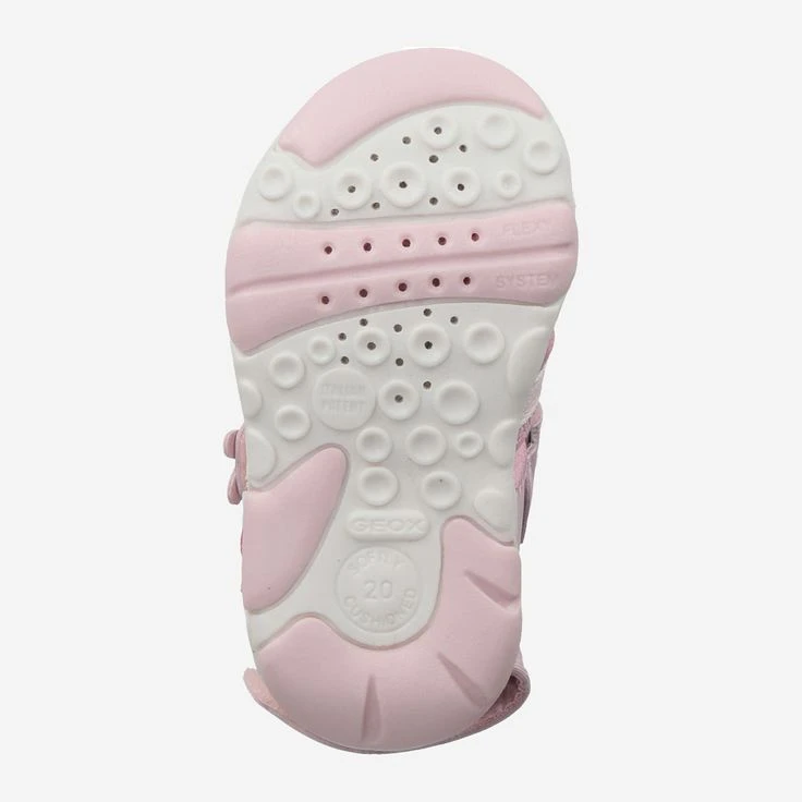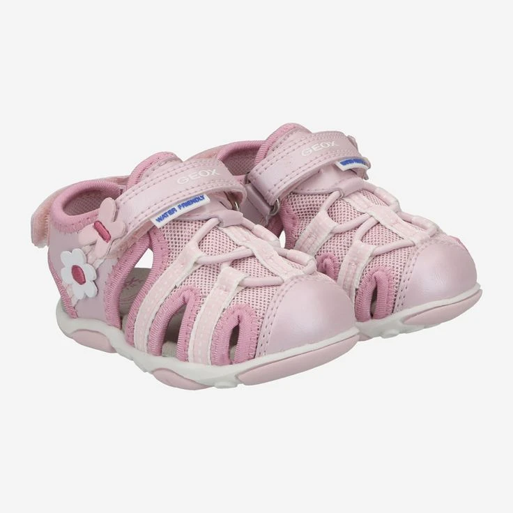 Mit „Agasim“ von Geox genießt Ihr Kind hohe Flexibilität und sicheren Halt. Die atmungsaktive Sandalette schützt den empfindlichen Zehenbereich optimal, und ist absolut rutschfest. Durch den praktischen Klettverschluss, sowie der fest vernähten Gummischnürung, kann Ihr Kind im Handumdrehen hineinschlüpfen. Das synthetische, rosa Obermaterial, sowie die Polsterungen sind schnelltrocknend, daher ist dieser Schuh ideal, wenn auch mal eine Pfütze lockt!, Reduziertes Einzelpaar!