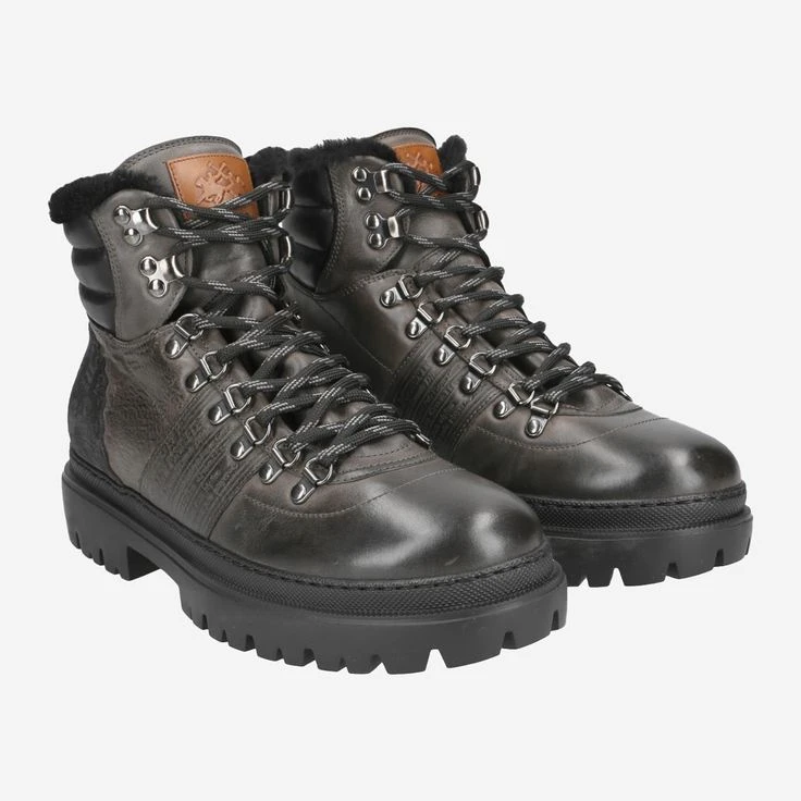 Diese gefütterten, italienischen Winter- Boots von La Martina verkörpern den Lifestyle von Luxus, Exklusivität und langjähriger Tradition. Die Manufaktur stattete einst die Universitätsteams von Harvard, Yale, Oxford und Cambridge aus, Sie genießen präzise Verarbeitung und den höchsten Qualitätsstandard. Das graue Leder in Vintage-Optik ist durch ein Innenfutter aus 100 % Lammfell veredelt, das Ihnen wohlig warme Füße schenkt! Edle Logoprägungen, sowie polsternde Steppungen im Schaft runden Ihr Luxus-Erlebnis ab!