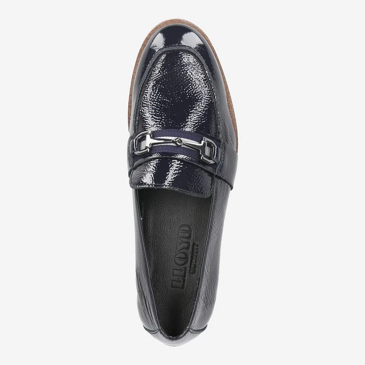 Ein wahrer Meilenstein der klassischen Eleganz ist dieser blaue Penny-Loafer von LLOYD! Das edel glänzende Lackleder passt sich durch die Knautschlack-Haptik flexibel an Ihren Fuß an, und schenkt Ihnen bequemen Tragekomfort. Die metallene Loaferapplikation in Form einer Horsebit-Schnalle verkörpert den erfolgreichen Business-Look ideal, und ist durch das unterlegte Textilband zusätzlich in Szene gesetzt!, Reduziertes Einzelpaar!
