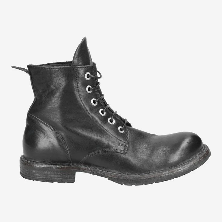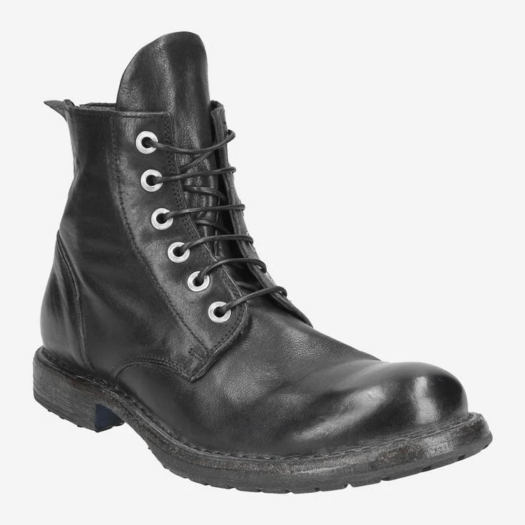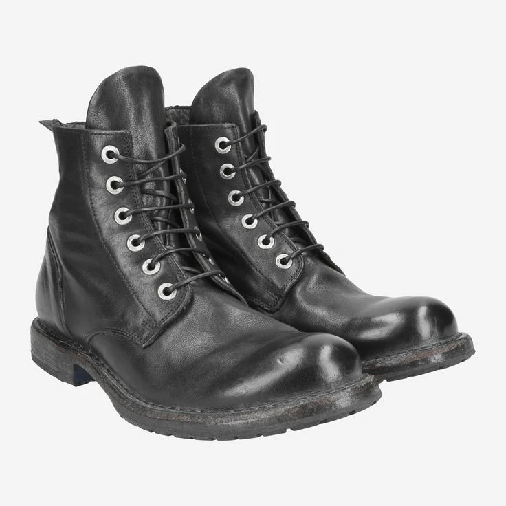Dieser italienische Schnürschuh überzeugt durch seine schwere, handgearbeitete Qualität! MOMA legt auch bei diesem Modell großen Wert auf Authentizität, Individualität und Charisma. Das schwarze Glattleder erhält eine ganz eigene Note durch eine speziell erzeugte Patina im angesagten Used-Look. Die 1/2 Ledersohle ist durchgenäht, und durch das Gummi rutschfest und wetterbeständig. Für alle, die das Besondere lieben, und handgearbeitete, italienische Machart wertschätzen und genießen möchten!, Reduziertes Einzelpaar!