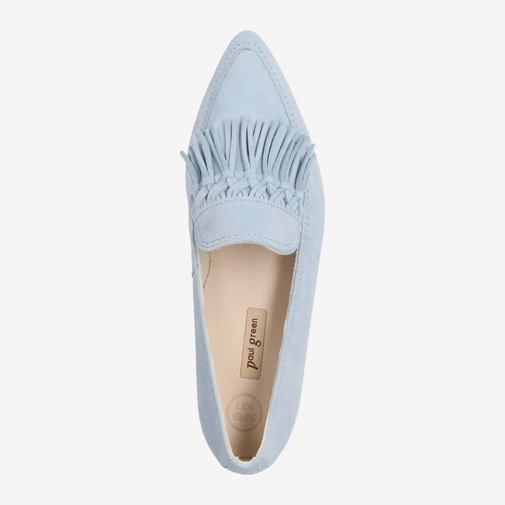 In hellem jeans-blau lässt dieser Slipper von Paul Green die Frauenherzen höher schlagen! Das samtige Veloursleder betont den zart-pudrigen Farbton besonders schön. Zur Jeans kombiniert, zum hellen Sommerkleid und auch zu Business-Kostümen zaubert dieses verspielte Sommermodell eine besonders schönen Look! Die Fransenapplikation bringt einen Hauch Country -Boho-Style in den klassichen Look! Eine zauberhafte Variation!