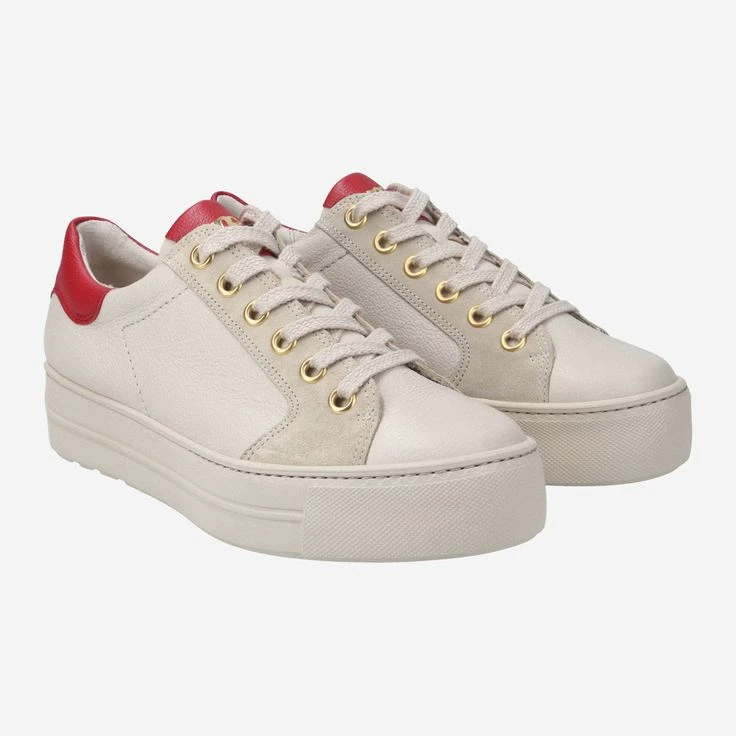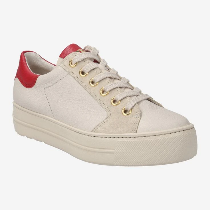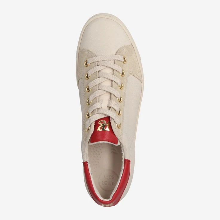 Ein lässiger Hingucker der neuen Saison ist dieser SUPER SOFT Pauls von Paul Green. Aus beigem Glattleder mit rotem Detail an der Hinterkappe überzeugt das Modell mit softem Tragevergnügen. Das anschmiegsame Innenfutter aus Leder mit Frottee bietet wohligen Komfort. Eine flexible Laufsohle rundet den hochwertigen Sneaker ab. Modisch unterwegs – den ganzen Tag lang!