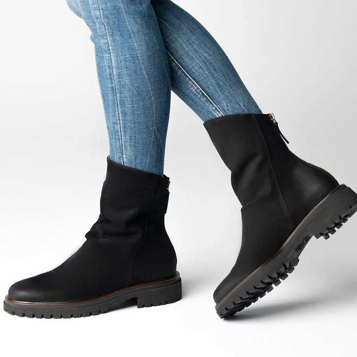 | Merkmale | Reißverschluss im Fersenbereich, asymmetrischer Schaft(vorn höher als hinten), Blockabsatz, Lederapplikation am Reißverschluss, atmungsaktiv |