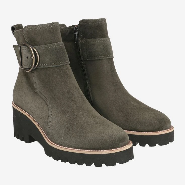 Ein traumhaft schöner Boot! Freuen Sie sich auf das neuste Modell aus dem Hause Paul Green! Hier dürfen Sie sich auf die perfekte Balance zwischen Plateau-Boot und eleganter Stiefelette freuen! Das grüne Veloursleder ist ein wahrer Kombinationskünstler, wodurch Sie zahlreiche Outfits mit dieser Stiefelette abrunden können. Der dekorative Riemen betont das Fußgelenk, und damit Ihre Schokoladenseite!