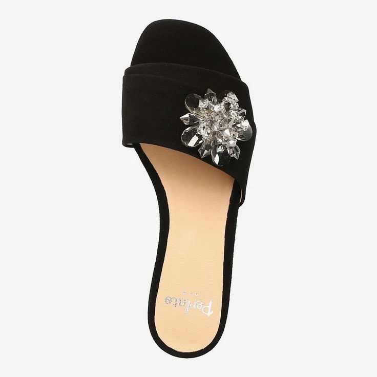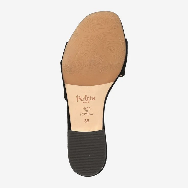Raffinierte Kombinationen mit innovativem Komfort wird hier vereint. Dieses traditionelle Modell von Perlato präsentiert sich in tiefstem Schwarz mit einem überlappenden Doppelriemen am Fußrücken. Der silberne Streifen im Absatz sorgt für Aufmerksamkeit, welche jedoch schamlos und schnell wieder von der prachtvollen Schmuckapplikation auf dem Lederriemen gestohlen wird. Ein Schuh mit vielen Highlights!