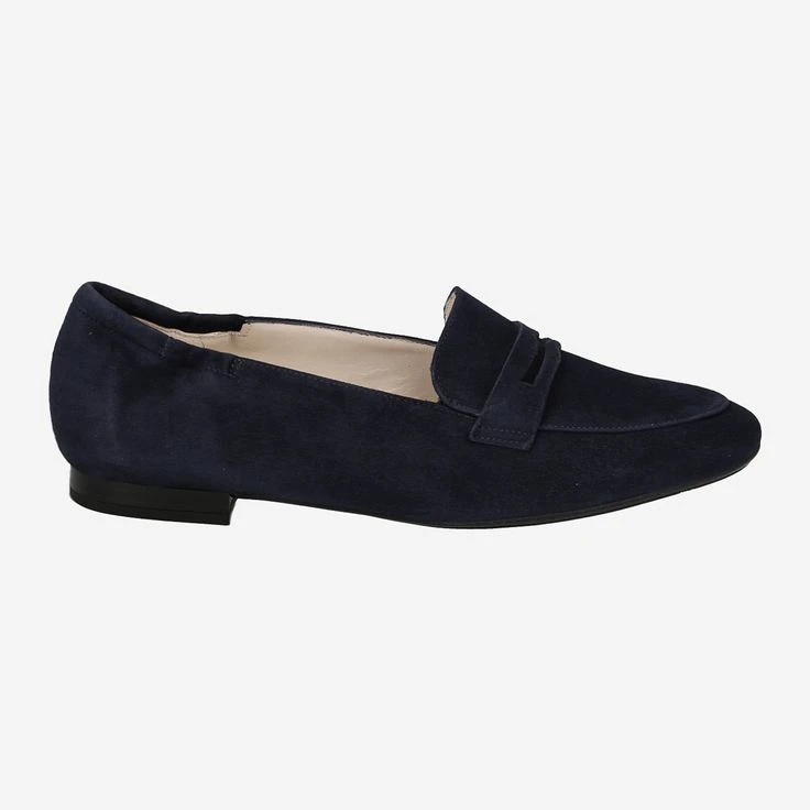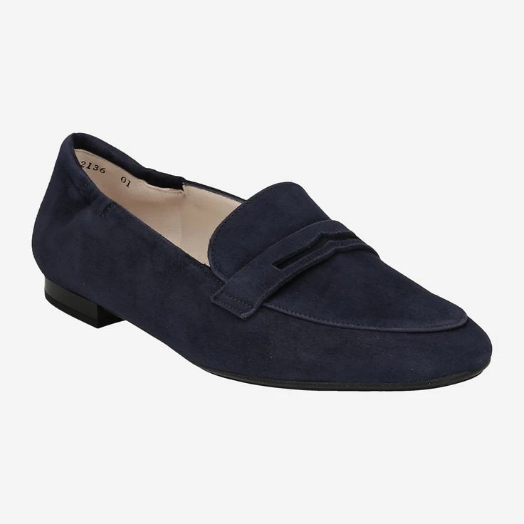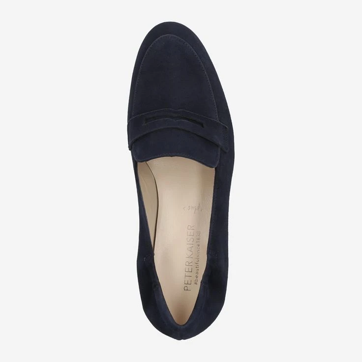 Exklusive Qualität und erlesene Materialien stehen bei Peter Kaiser im Mittelpunkt. Dieser klassische Penny Loafer „Gerlis“ aus blauem Veloursleder überzeugt durch das edle Design und durch die Eleganz, die er seiner Trägerin verleiht.