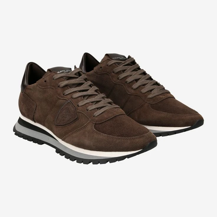 Pariser Design trifft auf italienische Machart: Bei TRPX DAIM IVER steht schokoladen-braunes, softes Veloursleder im Mittelpunkt. Durch feinste Perforationen und tonal gehaltene Logodetails entsteht ein ruhiger, edler Look. Die Sohle kontrastiert durch dreifarbige Streifenoptik. Dieser Kunstgriff unterstreicht den sportlichen Look des Luxus-Sneakers durch meisterhafte Finesse!