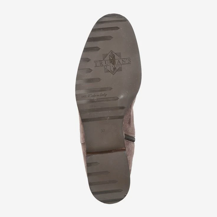 Zeitloser Klassiker in einer schlichten Form: Die braunen Stiefel von Trumans werden von Hand aus Velourseder gefertigt, an der Seite sind sie mit einem Reißverschluss versehen, für einen erleichterten Einstieg. Die Innensohle besteht ebenfalls aus Leder. Am Einstieg sind die Damen-Schuhe asymmetrisch geschnitten. Die klaren Linien und das reduzierte Design machen diese Schuhe zum optimalen Alltagsbegleiter und die hochwertige Verarbeitung und der flache Absatz garantieren ein unvergesslich bequemes Tragegefühl. Kreieren Sie eine moderne Silhouette und tragen Sie die Stiefel über schmal geschnittenen Jeans.
